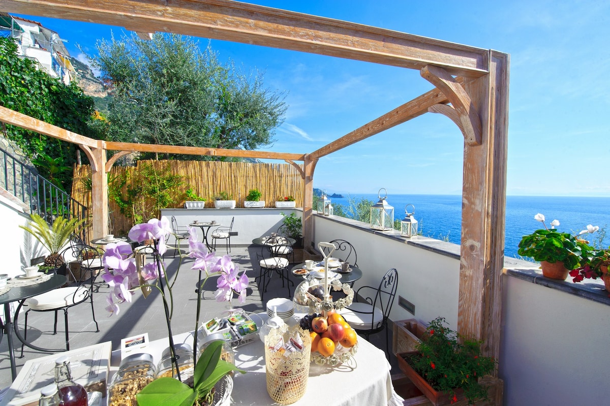 appartament with unic scenery ! are you romantic and sportiv? do you love nature and quite ?? we can be the ideal place for relax! at 5 km from positano , 10 minutes from path of gods we are between sea and the hill . the services included are: breakfast, cleaning day , use of the kitchen included city tax. ( is excluded trasportation of luggages) but there is possibility to reserv with extra cost (5 euro per bags) a Helper .
