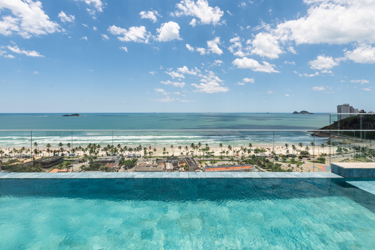 Já salva nos favoritos pra não perder ❤️ Airbnb perfeito na orla com uma vista deslumbrante do Pôr do sol 😍 • É o lugar perfeito para suas férias 🏖️🍹🏝️ Estamos no melhor e mais alto da orla! 2 Piscinas aquecidas, Lounge com café da manhã aos fds, Academia, 2 saunas, Jacuzzi, Sala de jogos ✨ Um Luxuoso ícone da Orla de Santos Airbnb de impecável, Top 5%, super equipado para você ter a melhor experiência. Veja com seus próprios olhos a vista para orla, pôr do sol e montanhas