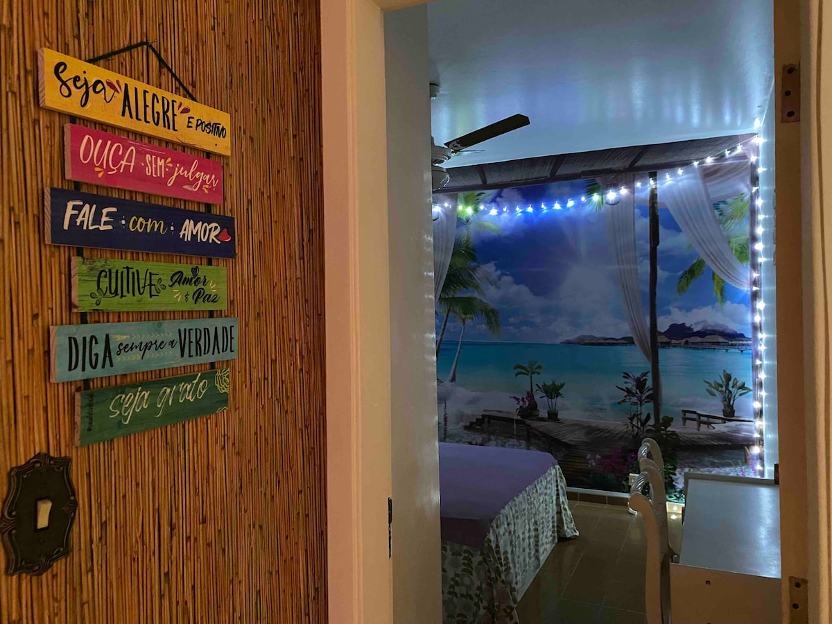 Imagine estar em um lugar ROMÂNTICO,❤️com todo conforto que você precisa.💙🌴🍹🏖️ Este é o seu paraíso, é um REFÚGIO de PAZ, AMOR e verdadeiras ENERGIAS BOAS, vindas da NATUREZA.💚 FLAT completo, com roupas de cama 100% algodão, Toalhas de Banho e de Rosto KARSTEN, mobiliado com eletro domésticos e UTENSÍLIOS NOVOS. Curta ao ficar neste lugar único com vista privilegiada para o MAR.💙 Edifício com PISCINA CLIMATIZADA, localizado a 50 metros da PRAIA DE PITANGUEIRAS no MORRO DO MALUF - GUARUJÁ.