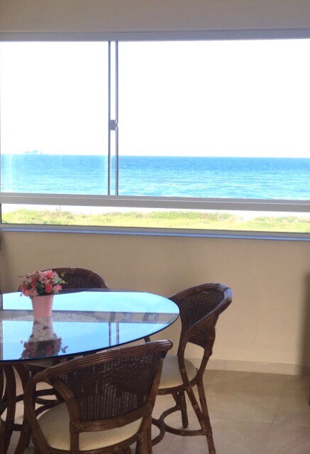 Apart terreo (casa sobrado) muito aconchegante , de frente para o Mar, amplo, arejado, pe direito alto. Bem equipada, com churrasqueira integrada cozinha/sala. Ar cond em 2 quartos, outro quarto somente ventilador, dois banheiros além da suite, lavanderia , Estac 1 carro, internet , tv smart . ATENCAO : Casa sobrado com 3 apartamento para aluguel, todos privativos com entradas separadas, no superior fica o anfitriao.Feriado de Carnaval SOMENTE familias, casais sob consulta.