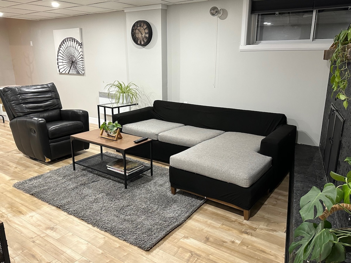 Modern Comfort near YUL Airport! This stylish retreat is just 15 minutes from YUL, offering a haven of modern comfort. You'll find everything you need for a relaxing stay, including a fully equipped kitchen to unwind in after a long day. Sit back, enjoy a complimentary cup of coffee or tea, and watch your favorite Netflix show. Book now and experience the perfect blend of convenience and style.