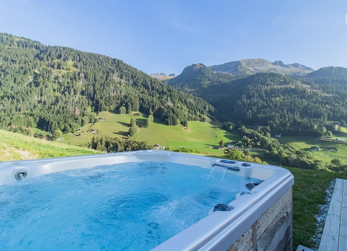 令人惊叹的度假木屋,面向山脉的水疗中心,可供12人入住