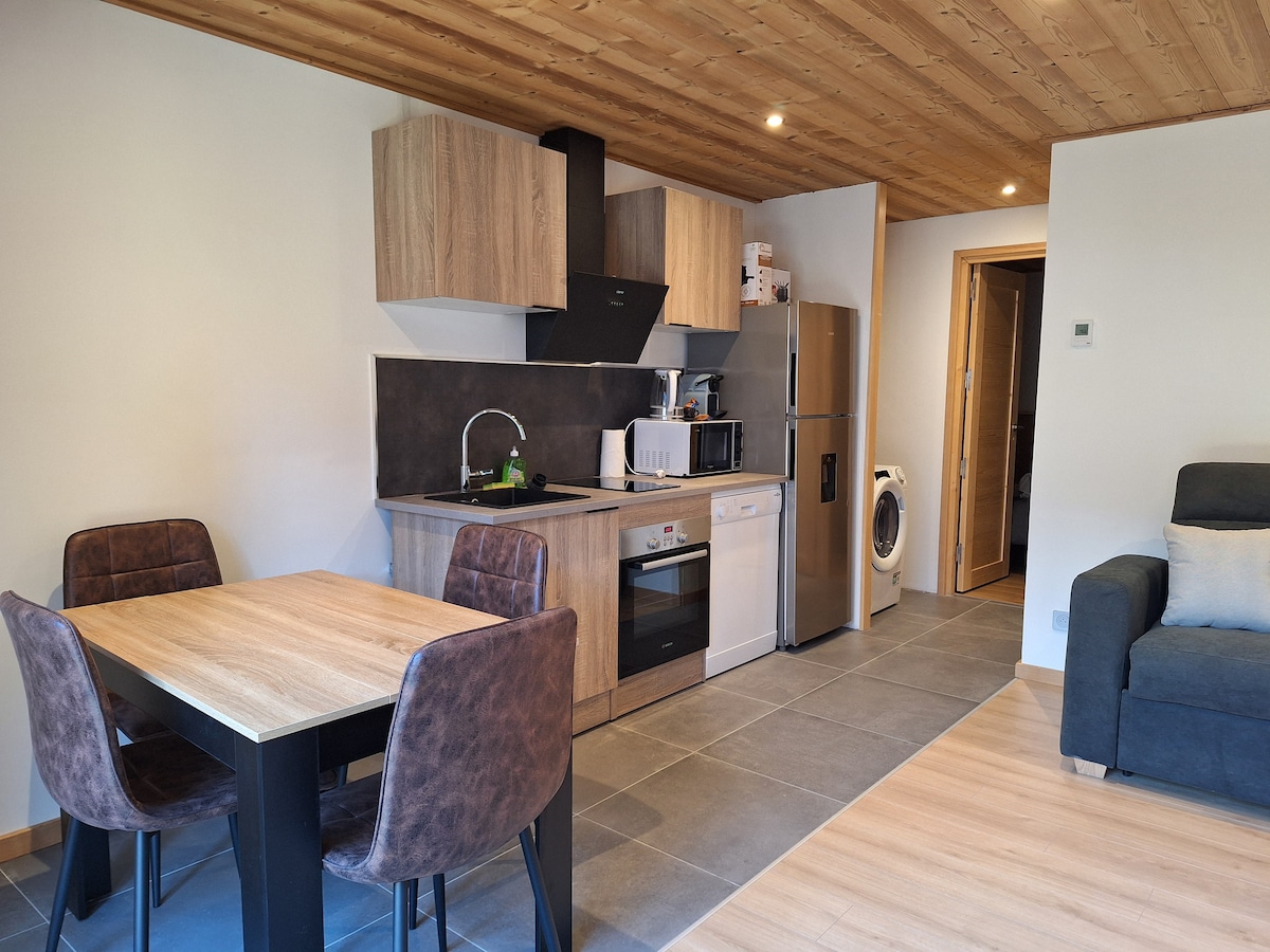Profitez de ce charmant et chaleureux appartement tout neuf de 29 m2 , entièrement équipé, au calme du rez de chaussée d'un chalet. Bien agencé, il est très fonctionnel. Accédez aux pistes de ski par un téléski gratuit à 100 m. Situé au départ de nombreuses randonnées. Vous pourrez également jouir du jardin avec une vue imprenable sur les montagnes et profiter de la terrasse couverte pour vous relaxer !