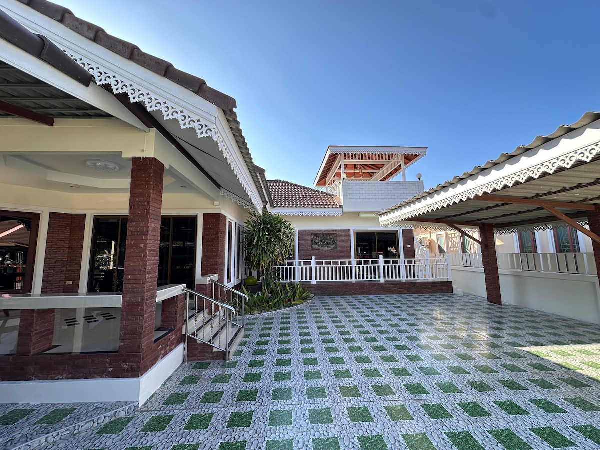 A beautiful large 3 bedroom well equipped A/C villa (wifi included), situated within a peaceful,attractive,secure gated community, having wide roads and a 25 meter pool large enough for a really good swim. A fabulous area with many varied small local restaurants. Gentle beaches-great for children-and a variety of small bars and food stalls. Indulge yourself in a relaxing massage after a good swim or romantic walk along one of the long peaceful beaches - you may even see the famous pink dolphins.