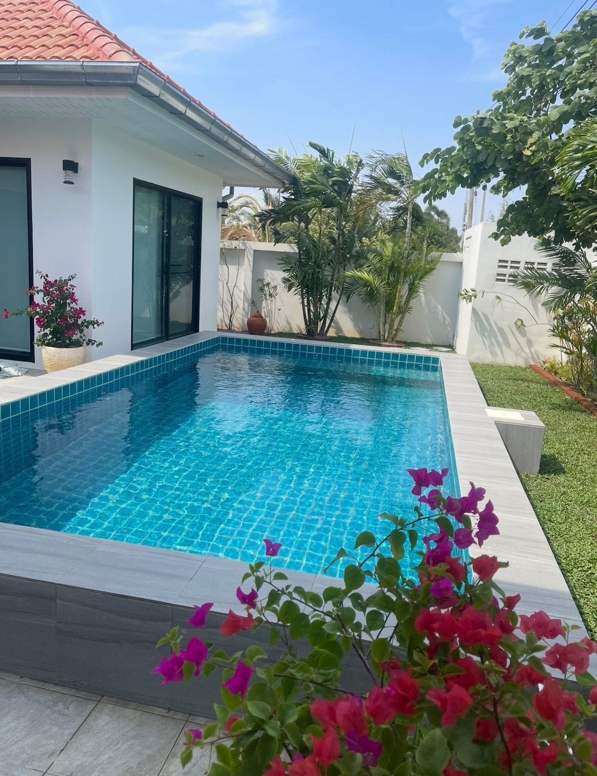 Cabana Pool Villa "A villa for your vacation". With suspeciaous space and design, we emphasize your holiday to perfect. House details 3 bedroom 3 bath room - 1st bedroom : King bed + bathroom with bath tub - 2nd bedroom : 2 Queen beds + Bathroom - 3rd bedroom : 2 Queen beds (bathroom shared with public) Kithchen with outdoor dining area Living room Pool with kid zone and slider Hotel standard utilities are provided