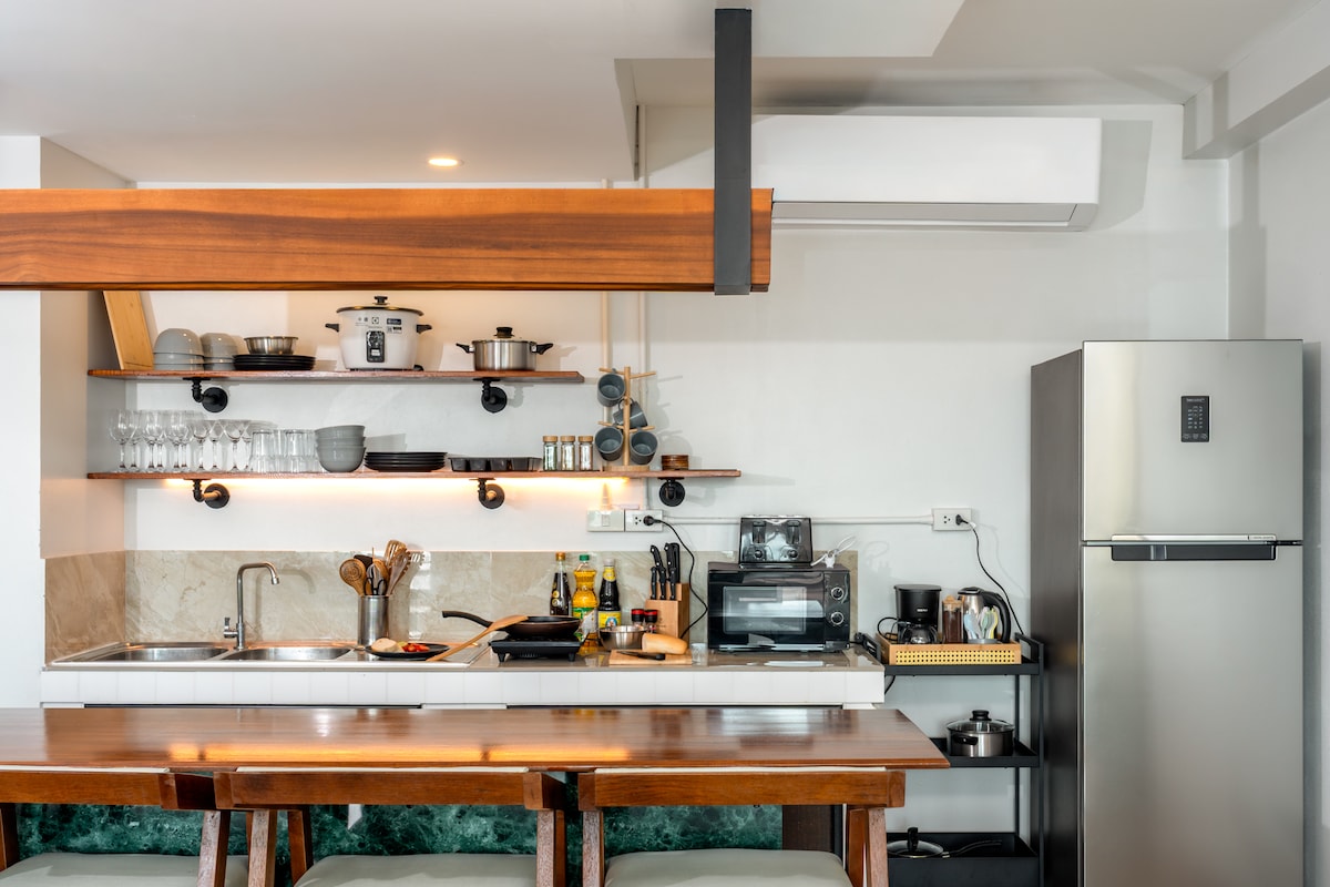 24小時自助入住,免費有蓋泊車位,適合一家大細,無論自駕或乘車都非常方便!這間位於華欣市中心的旅居,地點優越,出入四通八達 —— 屋苑可代叫的士,或步行至大路口搭乘綠色巴士站,路經及可抵達Bluport shppoing mall, Market Village, Hua Hin night market and Hua Hin Airport. 屋苑旁邊就是人氣文青夜市及美食夜市,步行可至Cicada Market及Tamarind Market;往海灘只需3分鐘腳程,步行5分鐘更可到達華欣火車站。大路兩旁有便利店、咖啡室、餐廳及地道船麵店,生活配套一應俱全。 單位內設備齊全,適合短住或長住,包括廚房設施(微波爐。煮食爐,雙門雪櫃)、三種色溫照明、免費Wi-Fi、洗衣機,另備有嬰兒床(請先预訂),貼心照顧家庭所需。 屋苑設施亦非常完善,包括健身室、泳池、兒童遊樂場、自助洗衣房及烘衣機(方便即日乾衣)、高雅大堂附設免費Wi-Fi等,無論工作或度假都輕鬆自在。