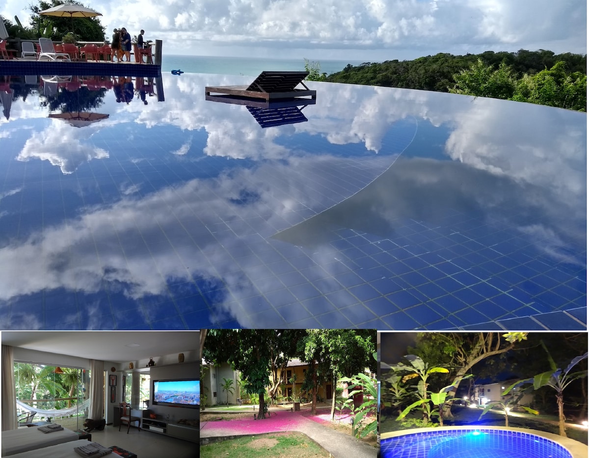 Studio perfeito para sua família! Localizado em um condomínio tranquilo no topo da colina, com vista para a exuberante Mata Atlântica. No térreo, a varanda com rede convida ao descanso e à conexão com a natureza. Aproveite a piscina com borda infinita e uma vista espetacular do Oceano Atlântico. A praia fica a apenas 700m! Wi-Fi exclusivo (50mb), gerador full e estacionamento gratuito garantem conforto total. Dias inesquecíveis com quem você ama!