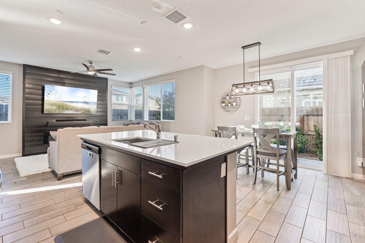 Welcome to our stunning Airbnb in prime North East Fresno! This contemporary hidden gem offers style and comfort. Rest easy on the King memory foam hybrid mattress or the Queen memory foam mattress. Enjoy the fully-equipped designer kitchen, Smart TVs, and free Wi-Fi. Need to work from home? No problem! Find office space here. Restaurants/ Markets within a mile. Woodward Park, just 5 minutes away. Yosemite National Park, 1.15 hours away