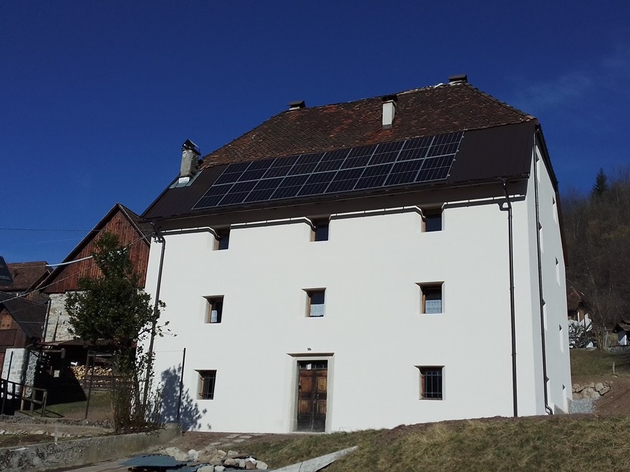100 Jahre altes Blockhaus, welches 2008 im Nachbardorf abgerissen und bei uns am Bio-Bergbauernhof wieder aufgebaut wurde. Dabei wurde besondere Sorgfalt auf die Verwendung natürlicher Baustoffe (Schilf, Lehmputz, Altholz) gelegt. Als Dacheindeckung dienen traditionelle Lärchenschindeln. Das Haus wird über einen großen Küchenherd und eine thermische Solaranlage geheizt, das Badezimmer verfügt über eine Fußbodenheizung. Das heimelige kleine Haus (75 m²) diente uns 10 Jahre lang als Wohnsitz.