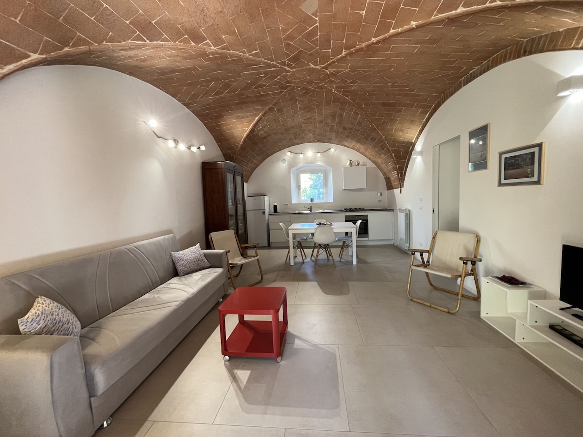 Cottage indipendente in pietre e mattoni all'interno del "Podere la Castellina" (ex convento 13° secolo), nel magnifico parco naturale della Montagnola Senese. Il cottage può ospitare comodamente 5 persone e comprende: - ampio soggiorno con tv e camino - cucina abitabile con forno - camera matrimoniale - camera con tre letti singoli - bagno con doccia A disposizione degli ospiti piscina panoramica, solarium e terrazza con vista mozzafiato, dotata di forno a legna e barbecue.