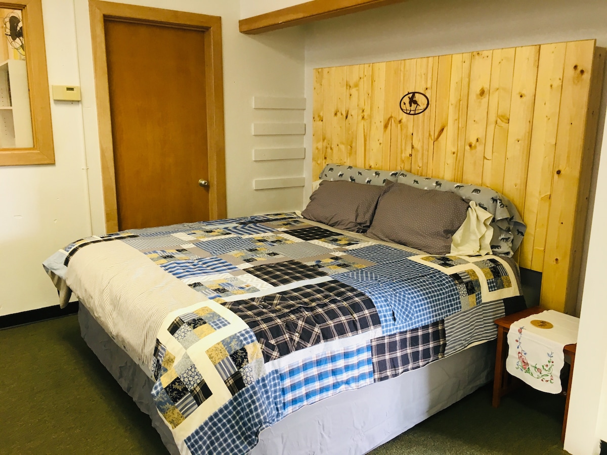 Come enjoy a cozy stay in the remodeled 1955 Iuka Grade School! The 38,500 square foot building has a lot of charm and unique history. The original grade school offered 4 class rooms, a music room, a gym with stage, and a cafeteria. When owners, Luke & Caitlin Laha, purchased the school in 2018 they wanted to keep the school aspect while incorporating the "hunting lodge" feel. The lodge is completely handicap accessible! There are community restrooms in the school, one men's & one women's.