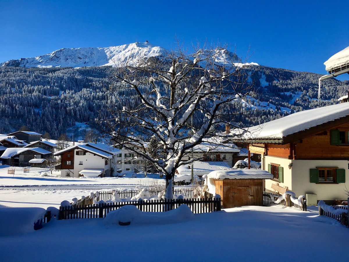 Die gemütliche, kleine aber feine 2 Zimmer Wohnung liegt am Sonnenhang in Luzein im schönen Prättigau. Ideal für Pärchen oder unkomplizierte 3. Wir stellen eine komplett eingerichtete Wohnküche sowie eine Waschküche zum trockenen der Skikleider, Schuhe ect zur Verfügung, wer will darf die Waschmaschine gerne mitbenützen. Internetfernseher und WLAN stellen wir Gratis zur Verfügung.