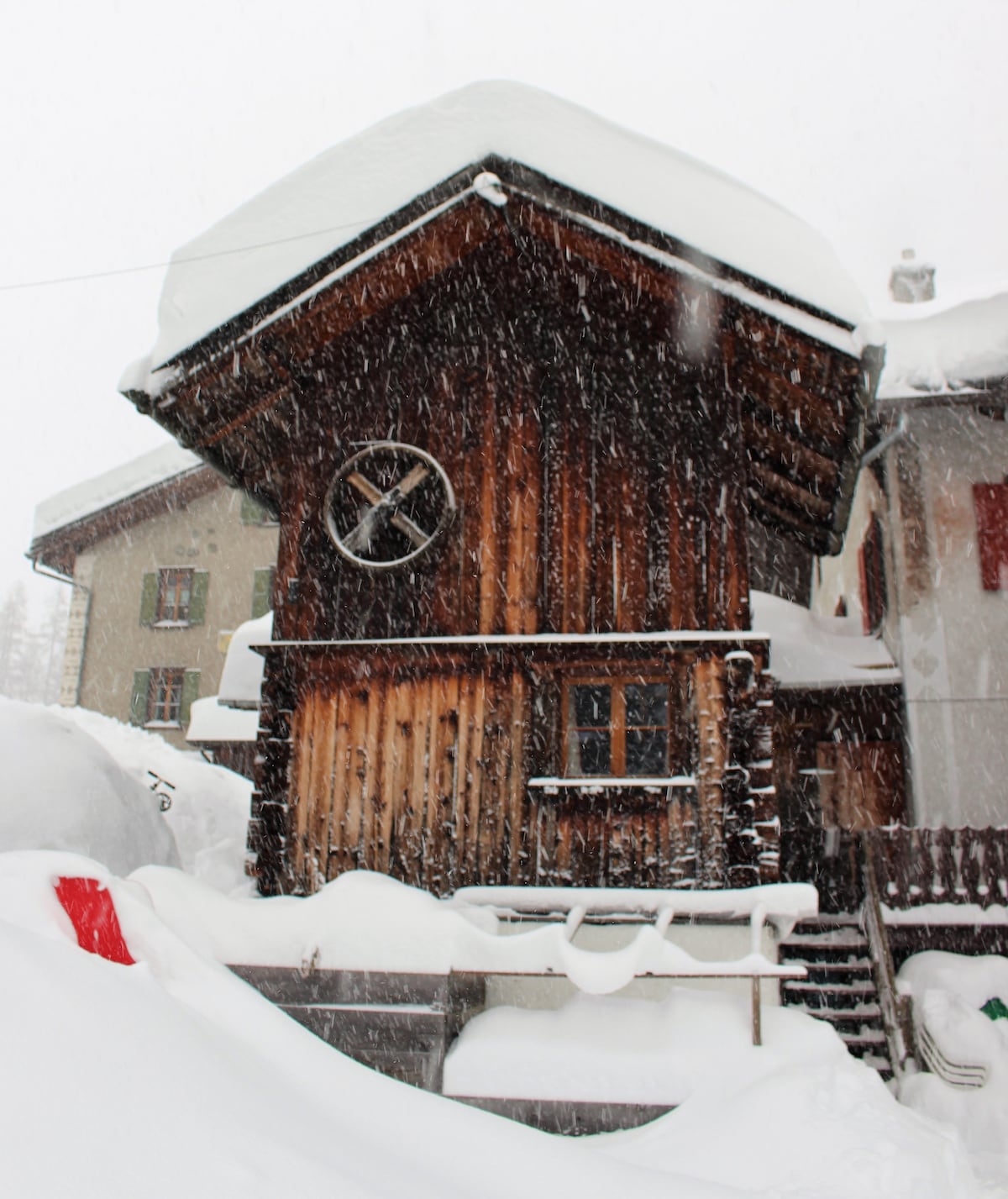 The small and rustic tiny house is right in the heart of the Swiss Alps. The accommodation has two floors with a double bed, shower, and toilet on the second floor. The first floor offers a small kitchenette and space to eat. We are located about 7 minutes drive from Davos, in a peaceful and gorgeous setting. To get into Davos, the bus stops conveniently in front of our house, and will bring you back here regularily. Bus fare is included with guest cards.