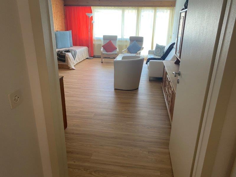 7.4.26 bis 31.8.26 reduzierter Preis, da mit Baulärm zu rechnen ist. Balkone werden erneuert und die Fassade isoliert. Danke fürs Verständnis. Die Wohnung ist liebevoll eingerichtet, sehr zentral gelegen und bietet alles, was man für ein gemütliches Leben in den Bergen braucht. Das helle Wohnzimmer mit grossen Fenstern lässt viel Tageslicht hinein und bietet einen herrlichen Ausblick auf die umliegende Bergwelt. Ein sonniger Balkon mit Aussentisch und Stühlen bietet Sicht auf das Jakobshorn.