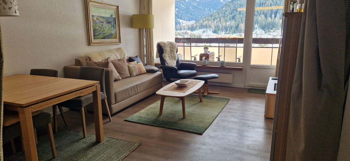 Central 1 Bedroom apartment in Davos with Free Parking! This cozy apartment is ideally located just an 8-minute walk from the train station and a step away from downtown attractions and dining. A Coop Pronto is right next door and so is the "Schatzalp" bus station. The Schatzalp ski slopes are just behind the building. Enjoy a shared pool, mini-gym (shared space with workout equipment), and free parking in a designated garage spot. Book now and experience the best of Davos!
