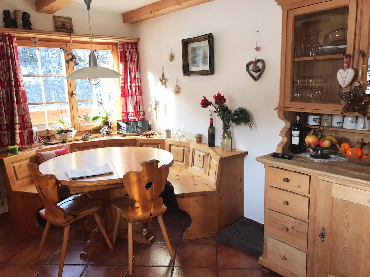 Our cozy apartment with fireplace has a fantastic view on the glacier and is in a quite corner of Klosters. The Gotschna Gondola is 7 walking minutes away, as are all the restaurants and shops. The 100m2 are set up to give a spacious feeling the the high ceiling (see the charming beams?) and the combined living and dining room. The 3 bedrooms allow even bigger families or you may want to take friends along. read details carefully: its on the 3rd floor & one bedroom is small (great for kids)