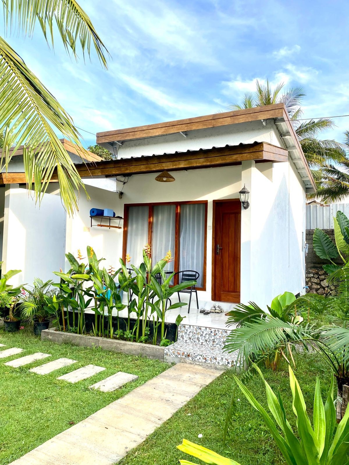 Stay in your own private, cosy private room surrounded by coconut trees and mountain views. My family and I live onsite too — in a separate house — and we are always happy to welcome kind, respectful people into our peaceful homestay. The private room is in a quiet area just outside Kuta. It’s peaceful here, but still close to everything. By scooter, we are located: • 7 minutes to Tanjung Aan Beach • 10 minutes to Kuta Mandalika • 20 minutes from Lombok International Airport