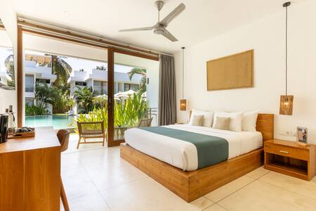 The pool view room is a room that is perfect for a couple and features a relaxing lounging space that gives you a gaze out to the pool view and the blooming Frangipani Flower. The room is equipped with Room Service, tea and coffee-making facilities, and bottled water. And it’s a walk away from the restaurant and the entrance, giving you easy access to your room Please note: Our place is located it's not in the center of Kuta. It takes 5 minutes by scooter to get to center of Kuta