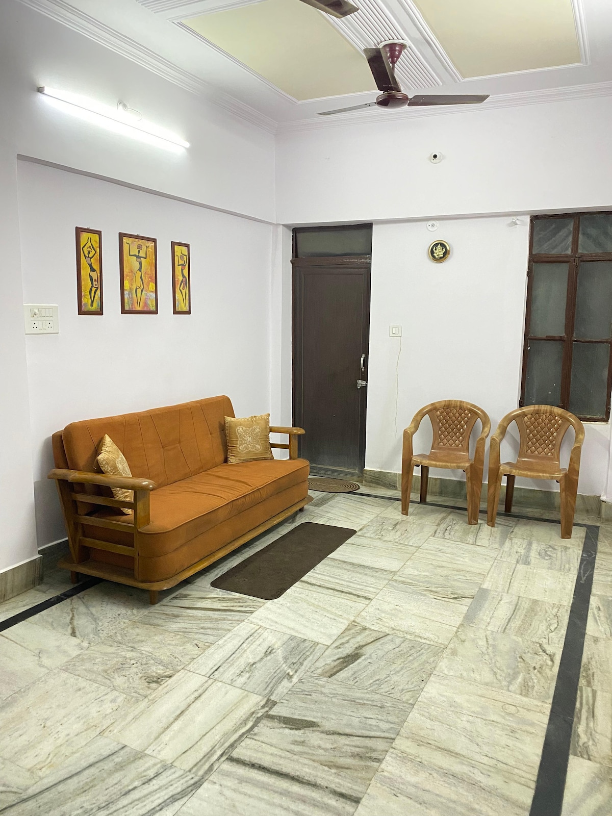 Experience the serenity of Sangam and Prayagraj by staying at this cozy and airy stay. Property ideal for 2 adults + 1 kid. What is being offered : 1 Room, 2 big single bed can be joined to make double, table chair, sofa, electric kettle, Wi-Fi. Kitchen( but no cookware), one extra floor mattress. This property is: Family Friendly, Peaceful, clean, Fully Ventilated, Having Very Spacious balcony with Greenery for pleasant mornings.(I promise you'll love the balcony) See you at the place .