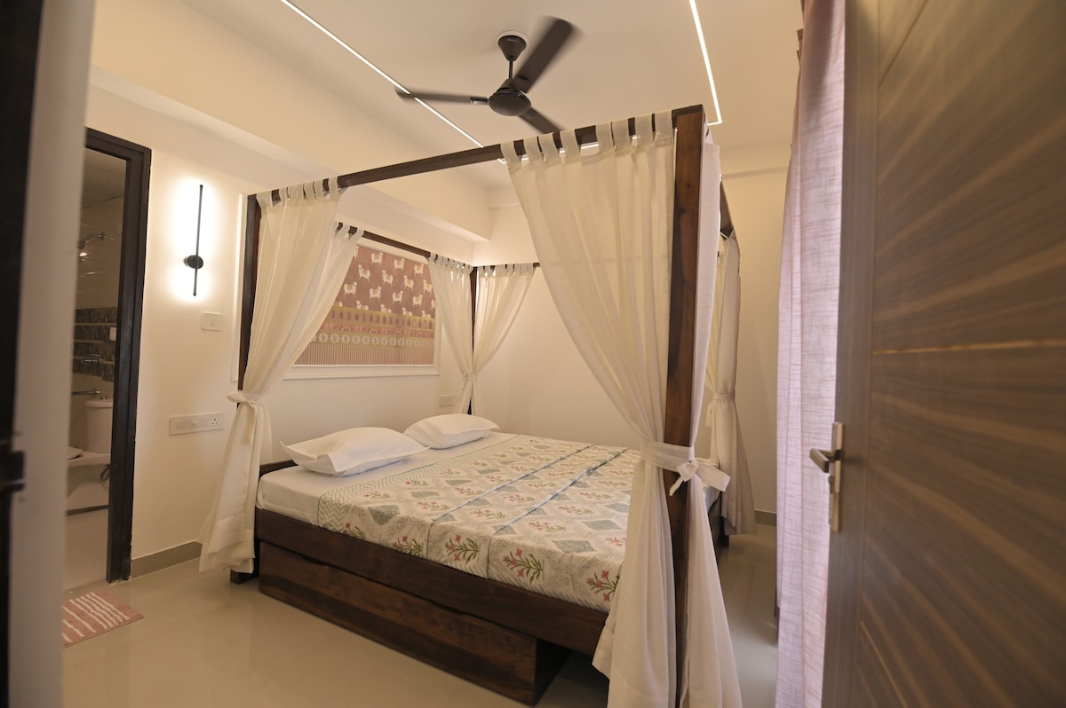 Welcome to Your Cozy Urban Retreat! Experience luxury in our elegant flat with three bedrooms, three bathrooms, and a stunning open terrace. Enjoy a fully equipped kitchen, spacious living area, and chic decor. Located in the heart of the city, you're close to public transport, restaurants, and attractions. Amenities include high-speed Wi-Fi, smart TV, air conditioning, and in-unit laundry. Perfect for families, groups, or business travelers. Book now for a memorable Kumbh stay!