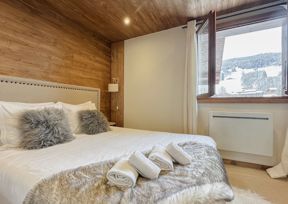 Covered with a mantle of powder snow in winter and lush green pasturelands in summer, the view from the chalet is breathtaking! Our design apartment, 60sqm in a condo Chalet, is a perfect place to host a family a couple or a small group with its 3 bedrooms. -Prices from 2 up to 5 Guests - Bed sheets and towels included. The lovers of ski, nature and peace will be satisfied. - 1 hour far from the Geneva airport and 4 km from the beautiful Megeve.