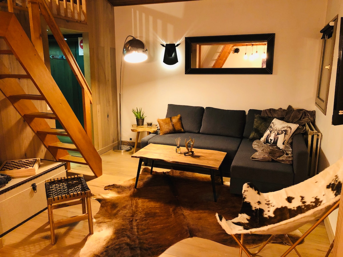 Add logs to a fireplace with a massive stone hearth and recline on a rustic wooden sofa. Gaze through picture windows at the alpine forest surrounding an authentic chalet. Return from the slopes and unwind in a luxury sauna in a cabin-chic bathroom. Une chambre de 25m2 avec lit double, rangements, armoire authentique. Un salon chaleureux et spacieux avec double baies vitrées donnant sur le Mt Blanc et cheminée. Et un sofa banquette convertible en 2 lits individuels. Cuisine pratique et toute équipée. Une salle de bain en granit avec douche et sauna 3 personnes. Une terrasse devant forêt et ruisseau ( avec fréquente visite des biches - voir photos ), avec fontaine et vue imprenable sur le massif du Mt Blanc. The chalet is an individual construction fully available and reserved for the guests. So are the terrace and the surroundings ( a small river, a private bridge and access to the forest ). A disposition pour toute question. Dans le hameau de Coupeau : Chalet authentique dans la forêt au-dessus des Houches avec vue exceptionnelle sur le massif du Mont Blanc. En Bord de petit torrent avec des biches A 5 min en voiture des Houches, à 10 min de Chamonix, à 1h de Genève. Easy access by road to the chalet. 2 kms from Les Houches and 10 kms from Chamonix. Parking just behind the chalet A fully renovated old chalet. With all modern comfort ( inc Sauna for 3 ) and top decoration. A unique view on the MontBlanc chain. The chalet is in the hamlet of Coupeau, in the forest above Les Houches, with exceptional views of Mont Blanc. It's a 5-minute drive to Les Houches, 10 minutes to Chamonix, and an hour to Geneva.