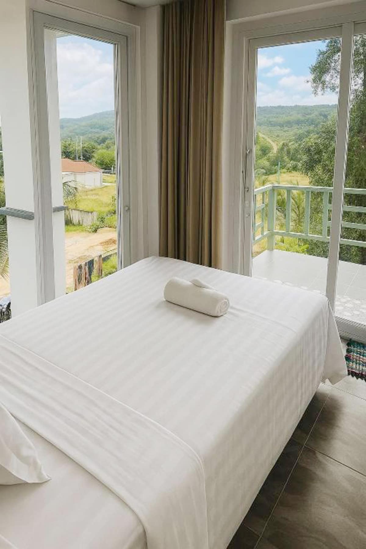 Standard Double Garden View Rooms have balconies measuring 26 square meters, are completely furnished with a table and chairs, a flat-screen cable TV, a closet, a clothes rack, black-out curtains, a shower, a hairdryer, slippers, and a complete set of bathroom amenities. These rooms are designed to resemble a private bungalow house. Breakfast for two adults and a child under five years old is included in the price of the stay.