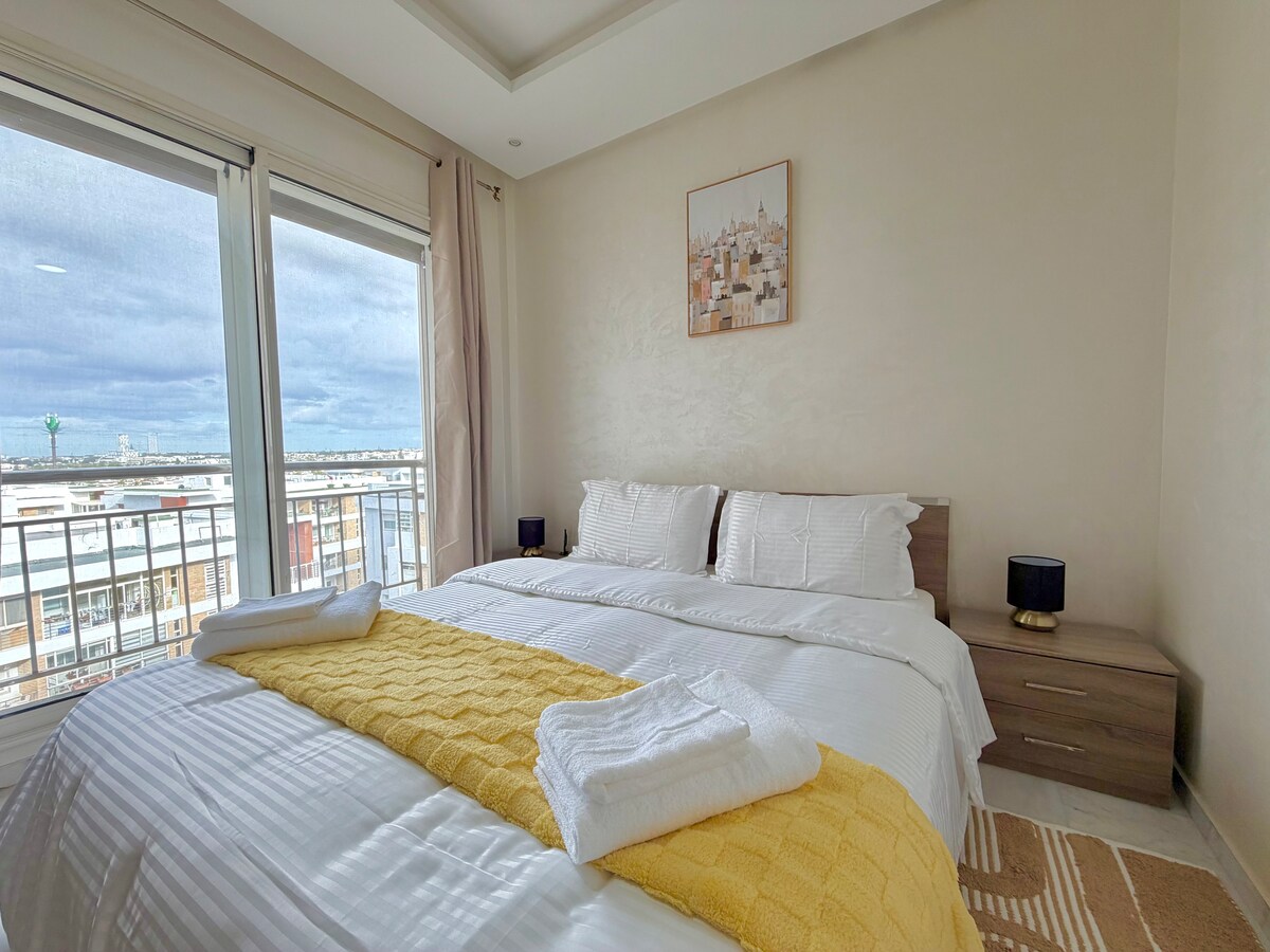 Luxe, Confort et Vue . - Appartement entièrement rénové à un étage supérieur d'une tour ,unique, idéalement placé au centre ville de rabat, proche de tous les sites et commodités, ce qui facilite la planification de votre visite. - Vue panoramique à couper le souffle digne d'un tableau de maître , étendue sur l ancienne Medina , l Atlantique , et plusieurs monuments emblématique. - L'ensemble de l Appartement a une vue fascinante de jour comme de nuit.