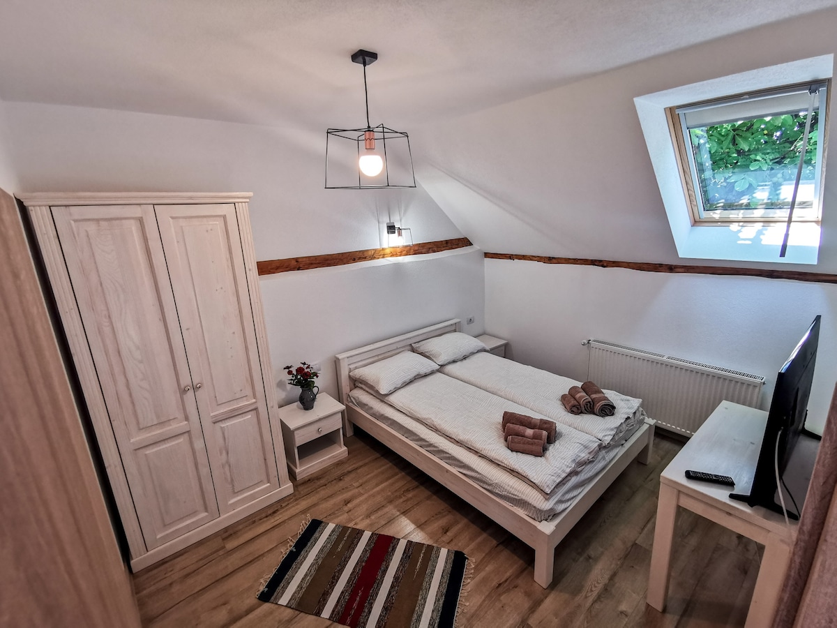 This Guesthouse is situatedin the heart of Transylvania, in Prejmer village, at a 300m distance from the Prejmer fortified church which is a UNESCO Heritage. the guesthouse welcomes you with 3 rooms, each of them equiped with a double bed, bathroom with a shower, Tv, wi-fi, a large living-room with an incorporated kitchen, fridge, oven. There is also a big courtyard with a built barbeque, a inflatable swimming pool during summer and a lot of plants. Jakuzzi is not included in price