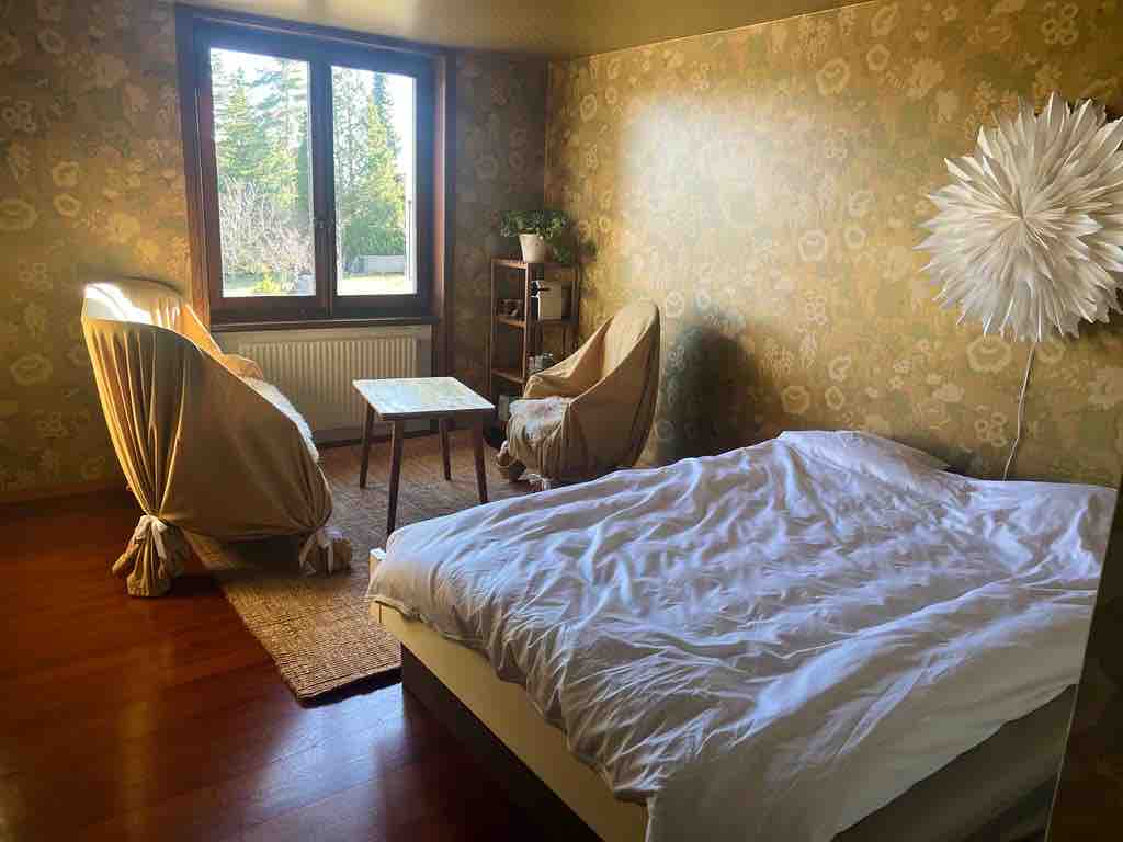On the 1st floor of a family home (owners live on ground) in the countryside: superb view of the Bernese Alps. Conveniently located in the 3 Lakes region: Neuchâtel, Biel and Murten (equipped beaches). Free parking, fully equipped kitchen, wood-burning stove in living room, laundry room. Dining area+BBQ in garden. 10 minutes' walk from the station. By car : 15min from Papillorama 20min from Bienne 20min from Neuchâtel 30min from Berne 30min from Fribourg Hiking, cycling, swimming, farm market.
