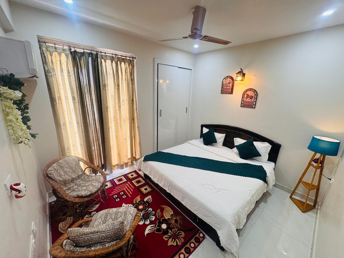 *Relax and unwind in this peaceful & luxury apartment with unique decor,ideal for couples or a family of three. Enjoy modern comforts with easy access to Vrindavan’s temples and attractions. *Premanandji padhyatra darshan-400m away (walking distance 5 minutes) *Start your day with yamunaji darshan & peacock sounds with beautiful sunrise from cozy balcony.Sink into a comfortable bed with positive vibes.