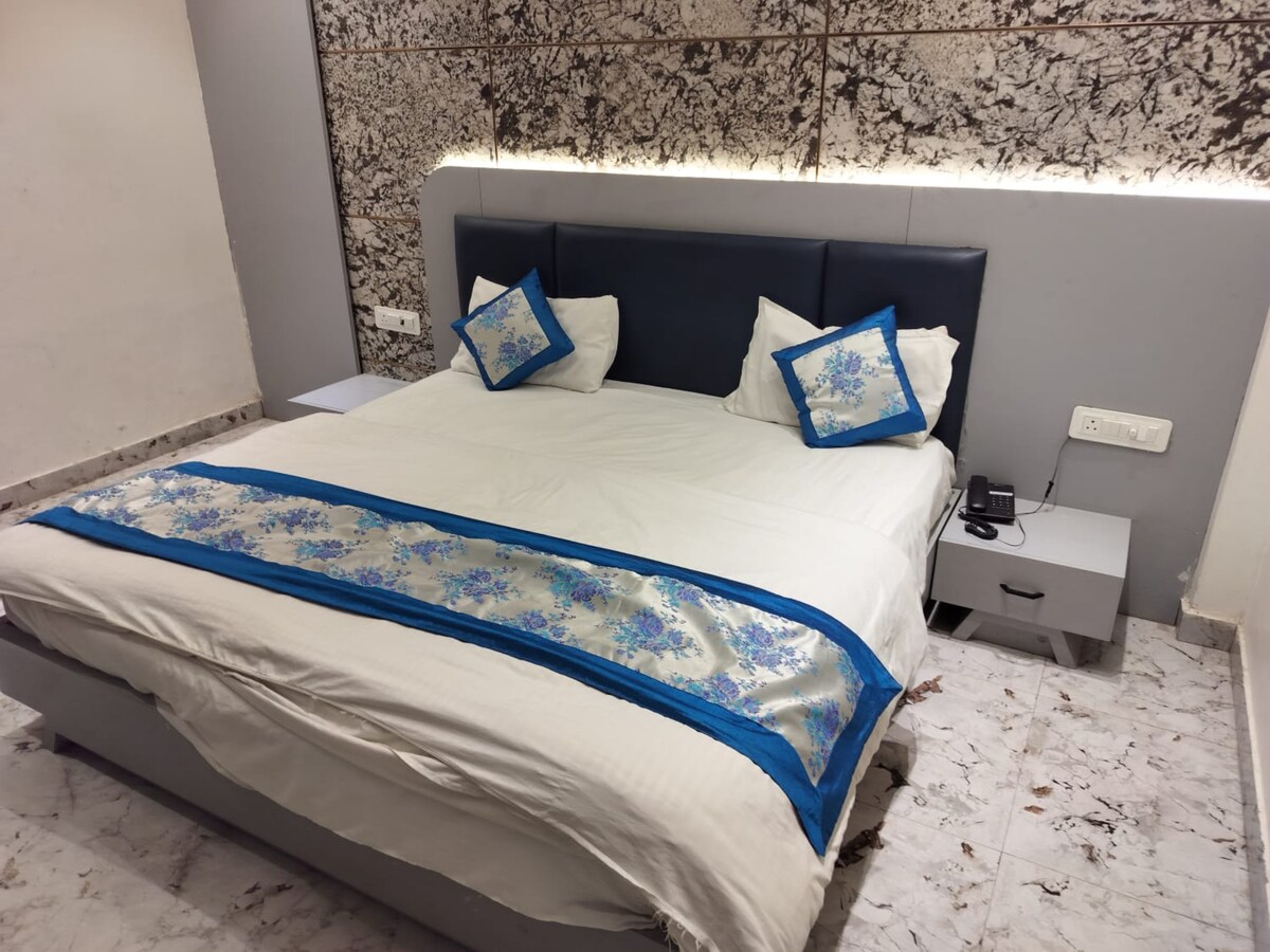 Welcome to SR Palace Vrindavan! Our Deluxe Room offers a clean, comfortable stay with AC, WiFi, TV, and attached bathroom. Located in a peaceful area near Prem Mandir and Banke Bihari Temple, it is ideal for couples, families, and devotees. Enjoy a budget-friendly stay with warm hospitality and easy access to major attractions.