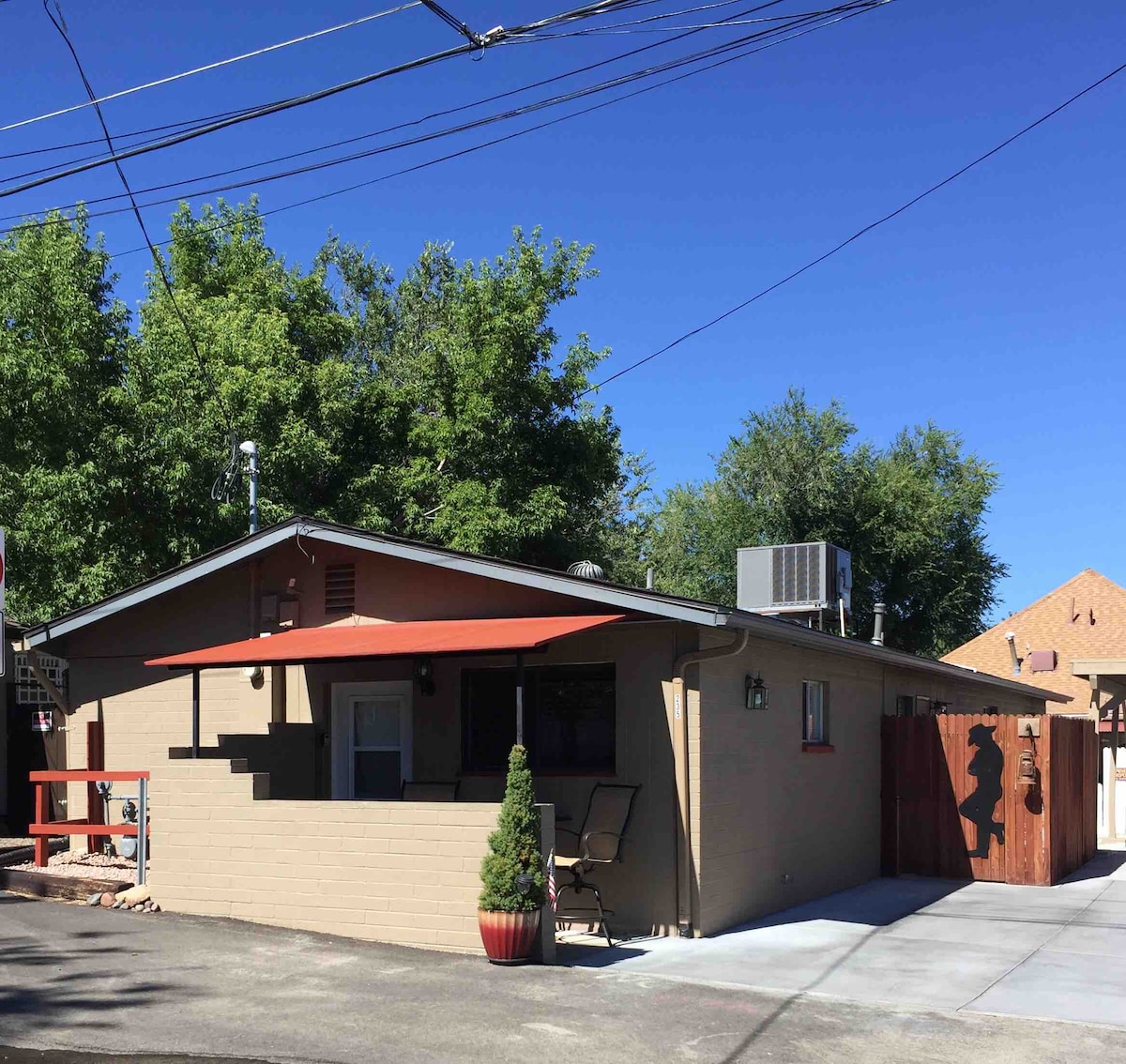 Charming and relaxing studio style cottage in walking distance to the Prescott downtown and courthouse square. You will love the location! This cozy gem is tucked back in one of Prescott's oldest neighborhoods on a quiet and conveniently located ally way less than a mile from historic Whisky Row! Comfortable and fully equipped to suit your needs. This newly built, private home can sleep three people, has full kitchen and bath, and beautiful front porch. Easily walk to restaurants and shops!