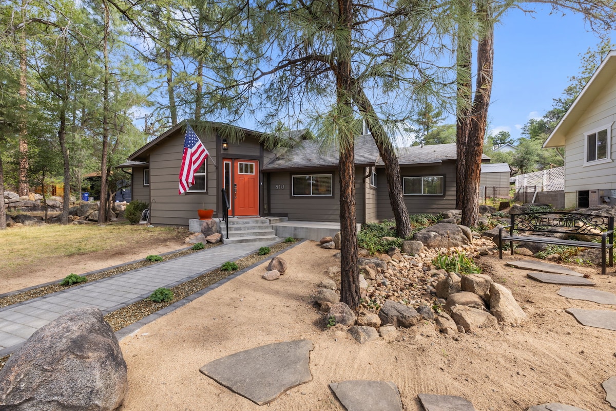 Welcome to your secluded, peaceful cabin nestled in the ponderosa pines with the convenience of Downtown Prescott/Whiskey Row less than 4 miles away. Enjoy the quiet neighborhood while watching plenty of wildlife from the 3 private decks that offer amazing views. Unwind with a beverage on the largest deck, cozy up to the fire table, or have a morning coffee on the upper level deck up in the trees. We allow dogs and many Prescott eateries have dog-friendly patios where you can dine together.