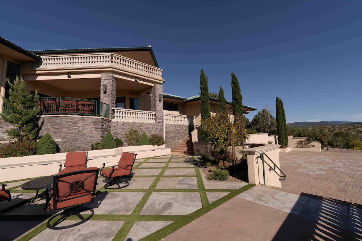 Escape away to our Castle in the Pines. Let your worries melt away whilst relaxing on the balcony with views of the pines and mountains. Surrounded by nature and wildlife, at 7700 elevation, but less than 20 minutes to the heart of downtown Prescott/Whiskey Row. Enjoy an abundance of indoor & outdoor games/activities/books/movies to keep any family entertained. Fully stocked kitchen, you never have to leave! Access to GREAT Wi-Fi so you can stream movies/work remote. PET FRIENDLY! Fees apply