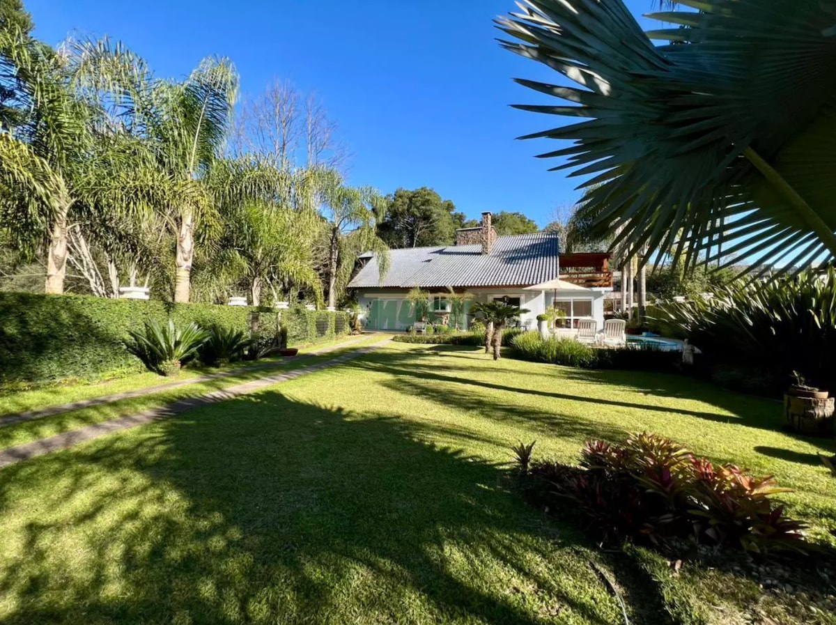Viva momentos inesquecíveis neste refúgio em Morro Reuter/RS! Casa de 4 dormitórios, incluindo suíte master com closet e sacada, 3 banheiros, sala com lareira, estar íntimo, cozinha equipada e duas áreas gourmet ideais para reunir amigos e família. Piscina privativa, amplo pátio e jardim com córrego criam um ambiente de paz e contato com a natureza. Perfeita para famílias ou grupos que buscam conforto, privacidade e tranquilidade em meio ao verde.