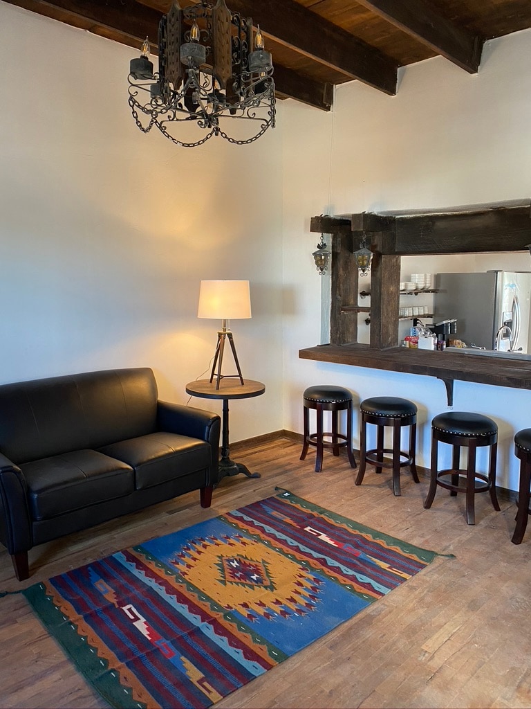 Our beautiful compound at the edge of town has two buildings: The front is for living and dining, and the back is for sleeping. It's a short walk between the two through a blooming desert garden and vine-covered pergola. Climb the spiral stairs at the front house to the roof deck for unobstructed views of the sunset, sunrise, and the Milky Way. We are five minutes from downtown. Dogs are accepted with pre-approval and a $50 flat fee--no more than one dog.