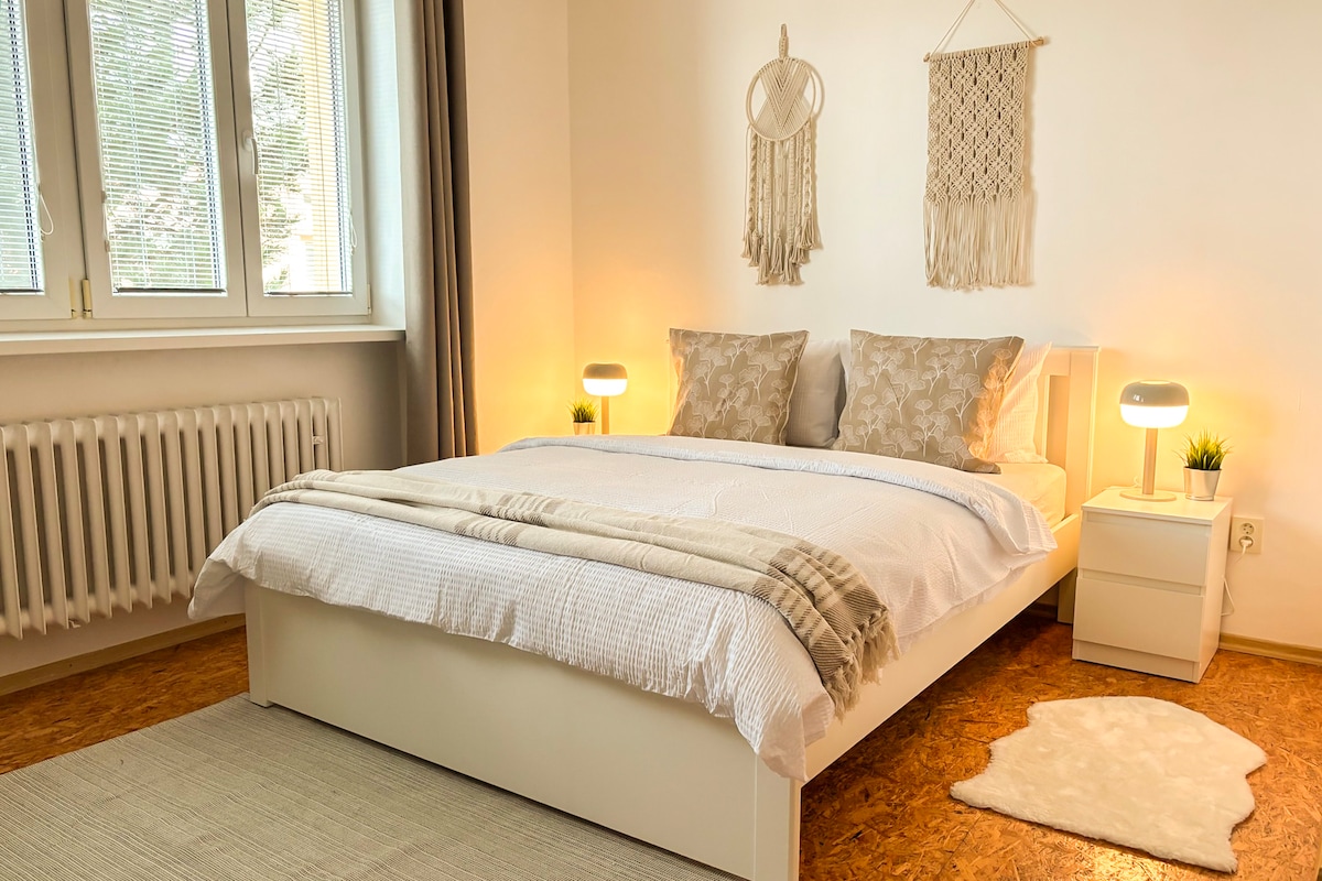 Zažite čaro historického Prešova v svetlom a luxusnom apartmáne priamo v srdci mesta. Či už prichádzate za romantikou, prácou alebo oddychom, čaká vás pohodlie na hotelovej úrovni, súkromné vnútorné parkovanie, rýchle Wi-Fi, Netflix a štýlový interiér – len pár krokov od centra diania. Základná cena platí pre 2 osoby. Každý ďalší hosť +12€ / noc, bábätko zdarma. Ubytovanie je pre **1 - 4 hostí** (spálňa s 180cm posteľou a obývačka so 140cm rozkladacím gaučom). Bezbariérový prístup - výťah.