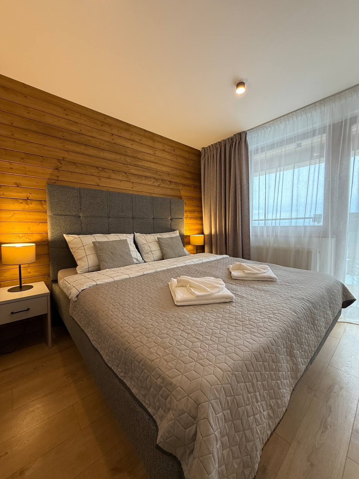 This One-Bedroom Apartments are part of Hotel Kukucka in Tatranska Lomnica, situated only 200 m from the lift to Lomnicky peak and Skalnate pleso. The best location in High Tatras. Furnished in mountain style with amazing cozy atmosphere. Bathroom has either bathtub or shower. Apartment has bedroom, living room, kitchen and bathroom. Some apartments also have balcony, some don´t have balcony. Balcony is on request. Our guests can also use hotels services such as sauna breakfast extra charge.
