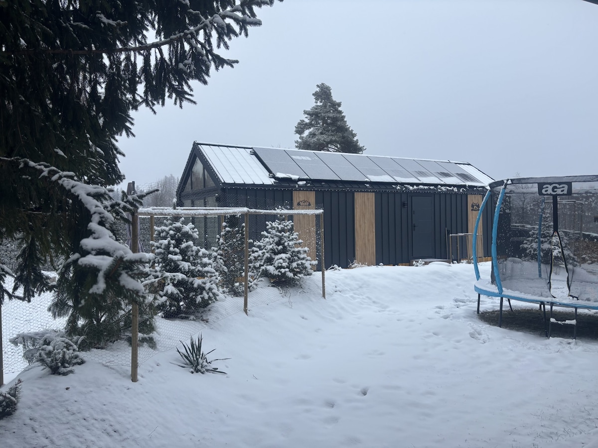 Escape with family or on a romantic getaway to Chalet Wolf, a magical off-grid cabin in the Tatra forest. Fully off-grid and solar powered (in winter, mindful electricity use is needed, generator may be required). Expect stunning views of the Tatra mountains, sunsets, forest silence, cozy evenings by the fireplace, and trails from the cabin.Relax in the hot tub under the stars. Ski resorts within 25min drive. 4x4 car recommended. Hot tub +€80/stay.