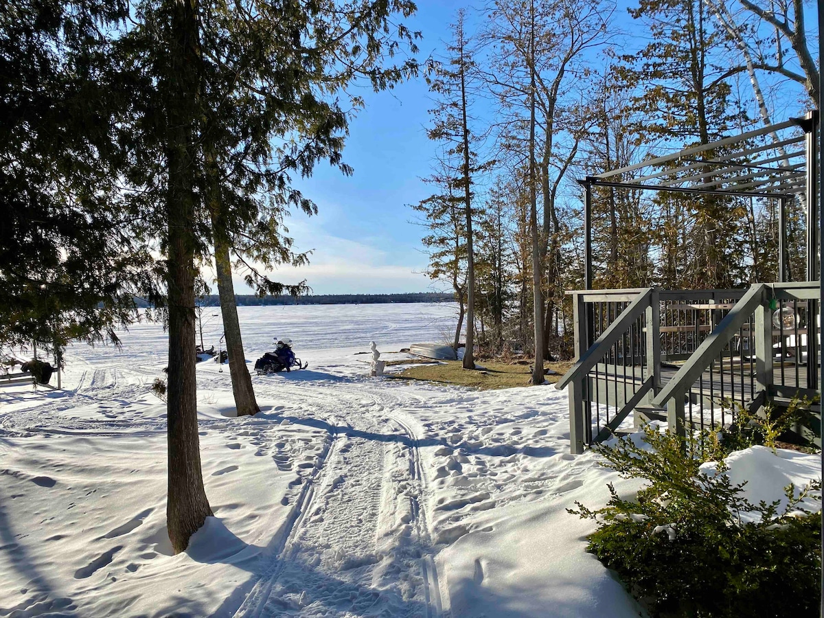 Lakefront- awesome for 2 families!! Extra guest fee waived for kids! This rustic and cozy vintage cottage is the perfect place to unplug and relax with family and friends. Spacious and roomy for any family, White Birch Cottage is a lovely draw back to simpler times to reconnect with nature and the ones you love. Includes a week’s worth of lake toys for a memorable vacation. Enjoy kayaking, paddle boarding, swimming, fishing, biking, campfires, and beautiful sunsets at this homey cedar cottage.