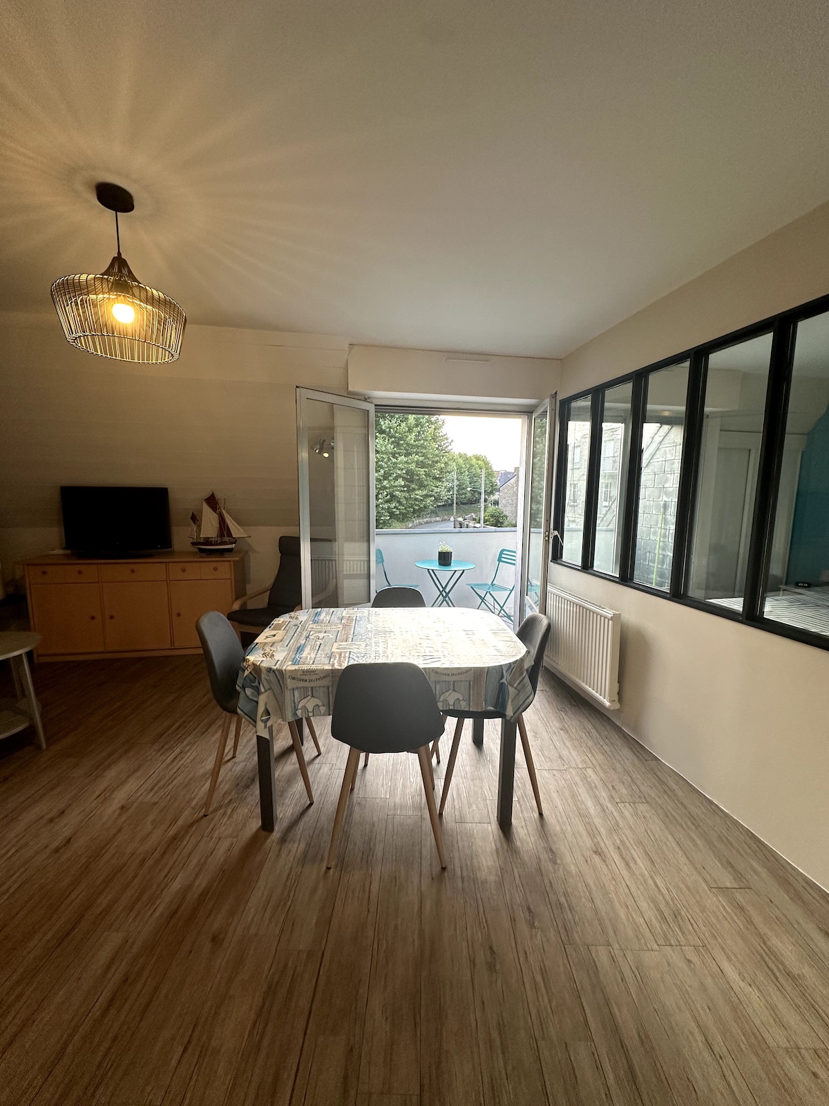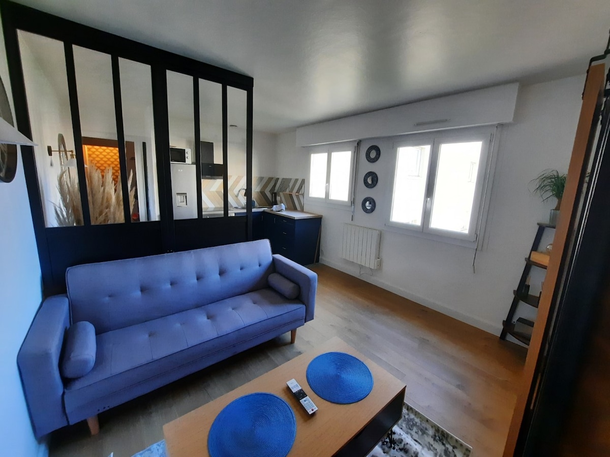 Charmant studio, décoré avec soins, lumineux, situé dans un quartier vivant en plein coeur du centre historique de Dinan. Vous serez situé à deux pas des commerces, boulangerie, restaurants , bars ( vous pourrez même profiter du restaurant en bas de la résidence). Tous les lieux atypiques de la ville sont accessibles à pied ( Jerzual, jardin Anglais, tour de l'horloge)