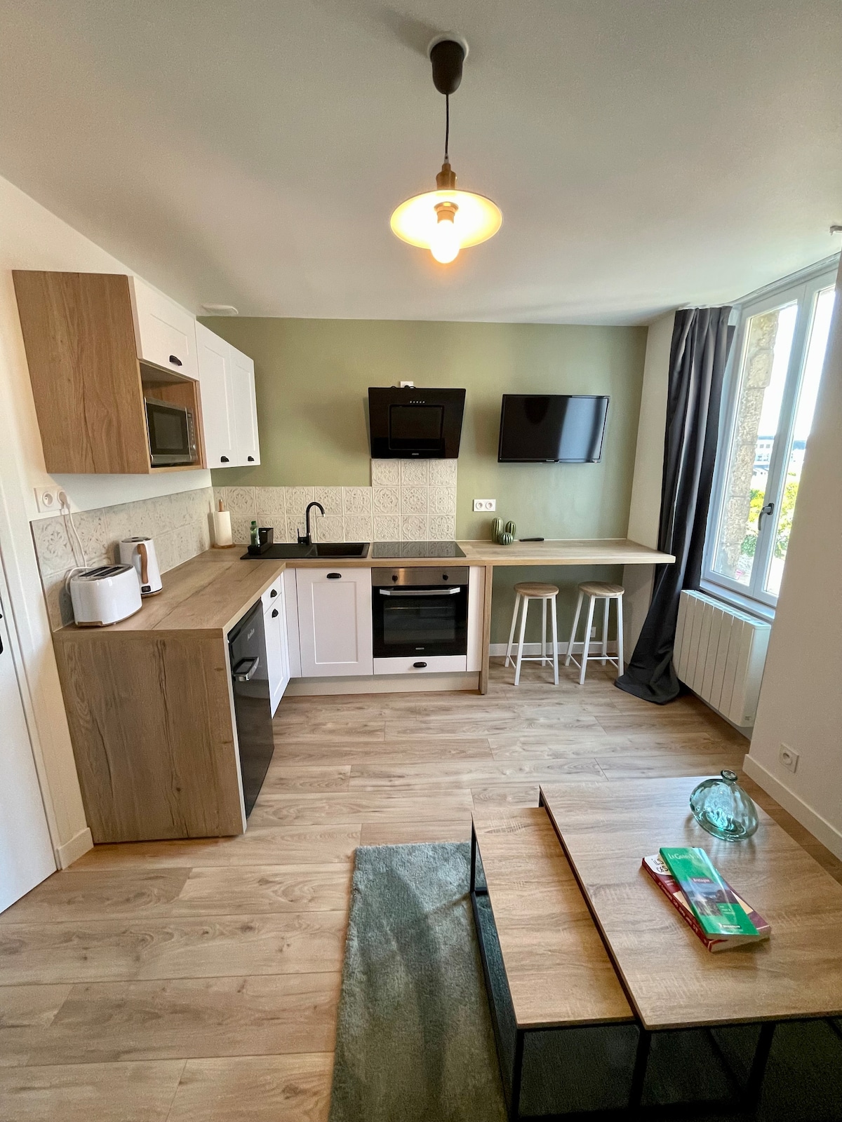 Welcome to this modern, recently renovated 2-bedroom flat nestled in the heart of Dinan's historic centre, offering picturesque views of the church of Saint-Malo. Relax in the bright living room, with its fully equipped kitchen. Let yourself be seduced by the cobbled streets and cultural treasures of Dinan. Enjoy an immersive experience at the heart of history, with all the pleasures of contemporary life. Book now for an unforgettable and unmissable getaway