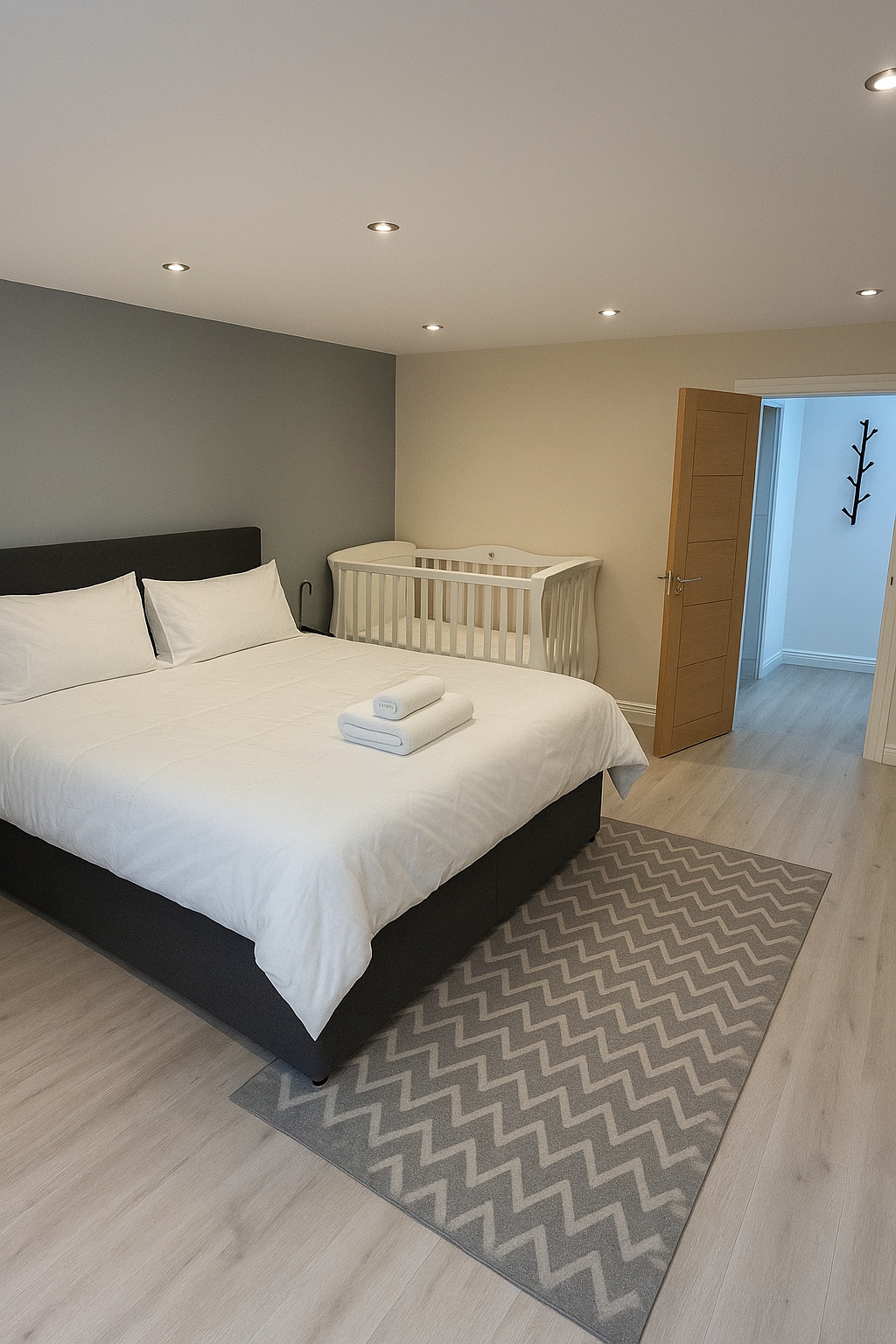 Cosy studio with private entrance and self check-in: arrive and leave anytime Walk to Metrolink, buses, Aldi and renowned restaurants. Fully stocked kitchen: fridge/freezer,oven&hob. Complimentary Breakfast Hamper & Nespresso pods provided Luxurious pocket-sprung king bed converts to sofa, baby cot available, 150MB fibre Wi-Fi, 50" TV, safe, ceiling fan & central heating. Modern shower with shampoo, conditioner, shower gel & towels. Secure driveway parking with CCTV. Laundry service available