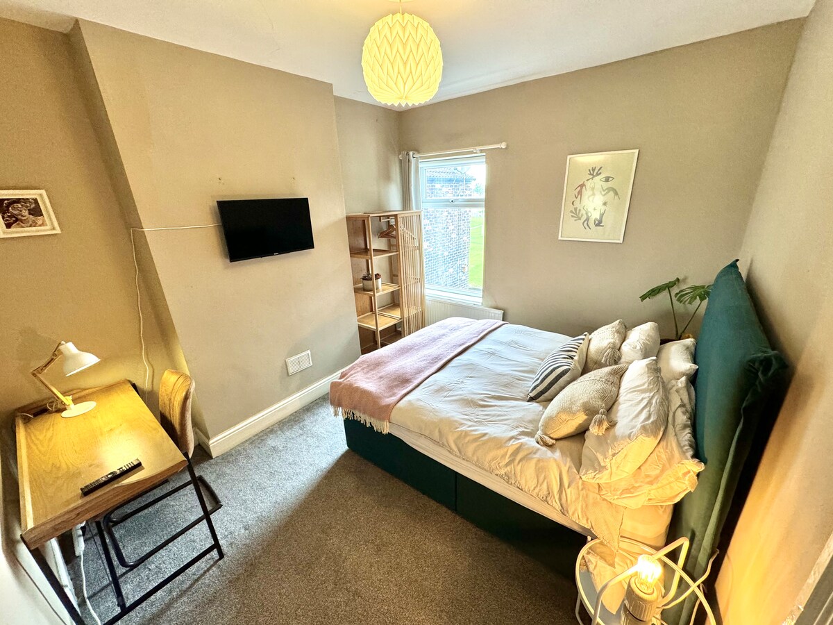 ***Discounts for longer stays. Great location for contractors and tradesmen working away Recently renovated. Good quality brand new beds and mattresses for a great night's sleep. High ceilings and original stained glass windows make the property feel bright and airy. Just 3.8 miles outside Manchester city centre in a quiet neighbourhood with a space to park on car/van on the drive and free on street parking. Many fantastic cafes, bars and restaurants just a short walk away. Fast broadband-115Mb