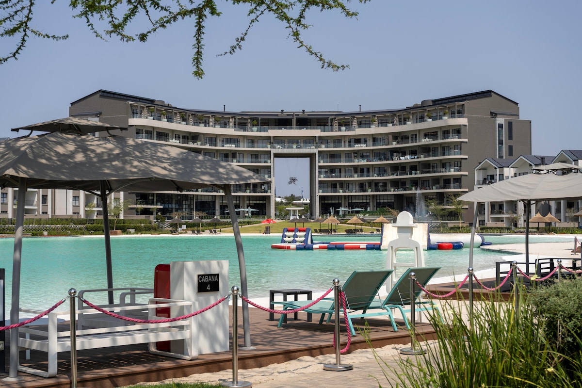 Come as family or friends to a water lovers paradise. There are many other activities as well to keep you entertained. Enjoy the lagoon view from balcony and main in suite bedroom. Apartment has; uncapped and unshaped WiFi smart TV (DStv, Netflix, Disney+) games room board games playgrounds Spa Gym Canoeing Lagoon view Lagoon access Restaurant Car wash