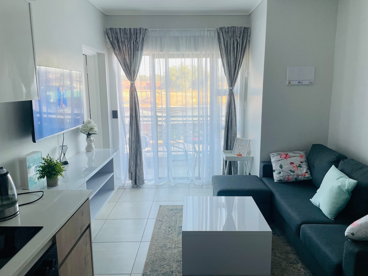 Our stylish 1bedroom apartment at the Blyde Riverwalk Estate, located at the heart of Pretoria East accommodates a maximum of 2 people. Perfect for both short getaways and longer stays. This beautifully furnished space offers modern amenities (restaurant, convenience store, laundromat, gym, dedicated workspace, day spa, cinema, boardroom, lagoon, game centre), stunning views, and a serene atmosphere, all within a vibrant and secure estate.