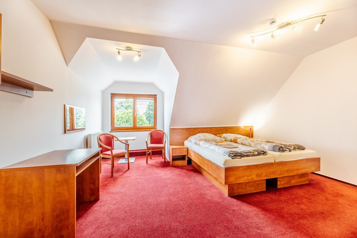 Toto jedinečné ubytování má svůj osobitý styl. Je zcela nové, podkrovní, útulné, s dřevěnými trámy i obložením, s designovou kuchyní a doplňky. Poloha je fantastická-jen 5 minut do centra, 8 minut k oblíbenému turistickému Zámku Dobříš, 1 minutu k rybníku a k nejbližšímu lesu cca 15 minut. Vhodné pro páry, rodiny, kamarády i cyklisty (možnost uschování kol). 3 pevná lůžka ( jedna manželská postel queen size, jedna samostatná). Pro každého hosta je připraven welcome drink.