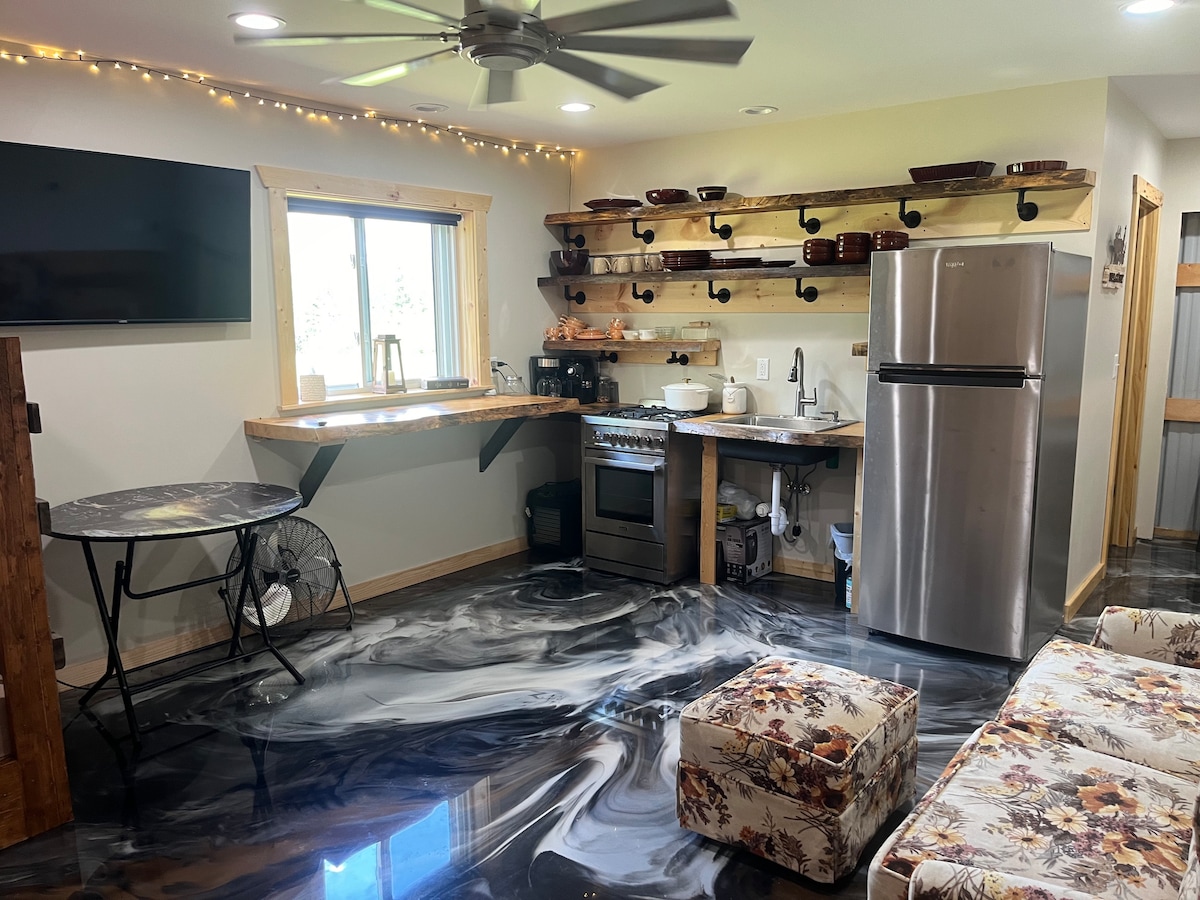 Bird song, wind, sun on grass. ✨ Zielke Haus is your refuge. :) This very unique farmhouse reprise holds all the space you need to unwind while enveloped by the natural world. All of this, with all of the amenities of modern life. Two private bedrooms, a futon in the open loft, two attic beds, and room for air mattresses as well, Zielke Haus invites you to wander through the charms of the North, summer and winter. Yes, we have wifi. It's very good. ;)