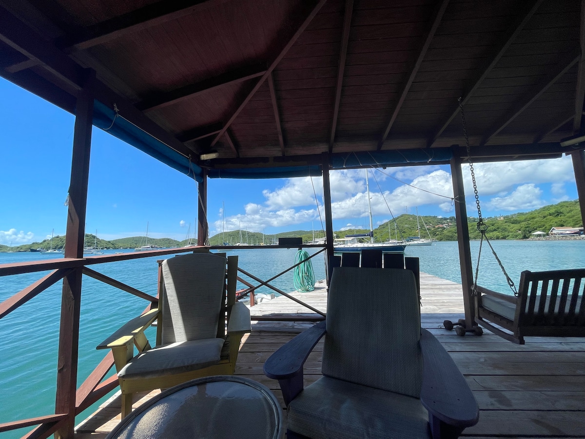 Studio room with full kitchen and shower room. A/C. Queen bed and small sofa, TV. Good WiFi Outside patio and cabana overlooking yachts in the serene Benji Bay. Walk through tropical gardens to access owners dock for swimming and sunset cocktails. Quiet serene bay, not suitable for parties.